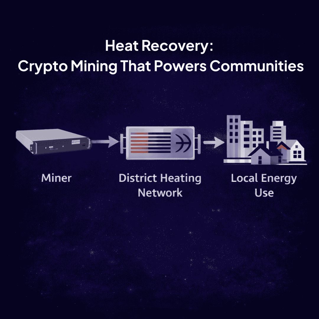 Die eingesetzten Miner werden wassergekühlt betrieben. Die entstehende Abwärme wird nicht ungenutzt abgeführt, sondern über definierte Einspeisepunkte in lokale Fernwärmenetze integriert.